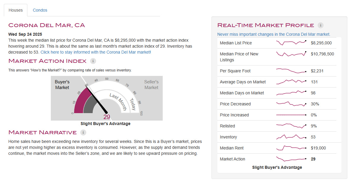 🏡 Corona Del Mar SFR Market Overview (Sep 24, 2025)
